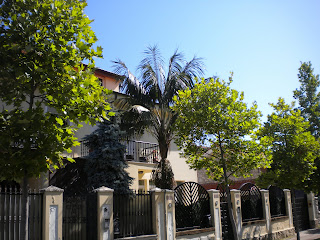 Bonito ejemplar de Kentia, de varios metros de tronco. Foto tomada el 3 de julio de 2011, en Santander, zona del Sardinero-facultades. Probablemente es una de las zonas, quiza, junto con la Costa Azul, donde más al norte se desarrolla esta palmera. Por cierto, a escasos 50 Km de allí en Reinosa tenemos, sin ser alta motaña una de las comarcas más frías de España, en diciembre 2009 enero de 2010 se registraron unos -20º a 850 metros sobre el nivel del mar.